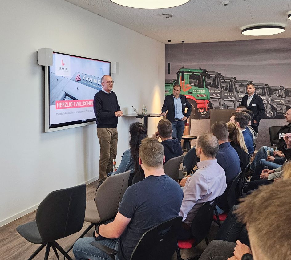 Unter dem Motto „Betriebsbesichtigung LEHNEN-Gruppe – Neubau Werkstatt & Lager“ gaben Christoph Lehnen und Markus Meerfeld spannende Einblicke in unsere modernen Bürostrukturen, technische Bereiche wie Werkstatt, Lager und Bauhof – und natürlich in die Innovationskraft unseres Unternehmens.