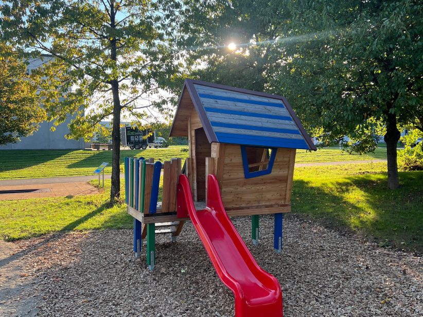 Laufstrecken, Outdoor-Fitnessgeräte, Balance-Stationen und entspannende Ruhebereiche laden zum Auspowern oder kurzen Abschalten in der Mittagspause ein. Bewegung an der frischen Luft steigert nicht nur das körperliche Wohlbefinden, sondern auch Konzentration und Motivation im Job.
